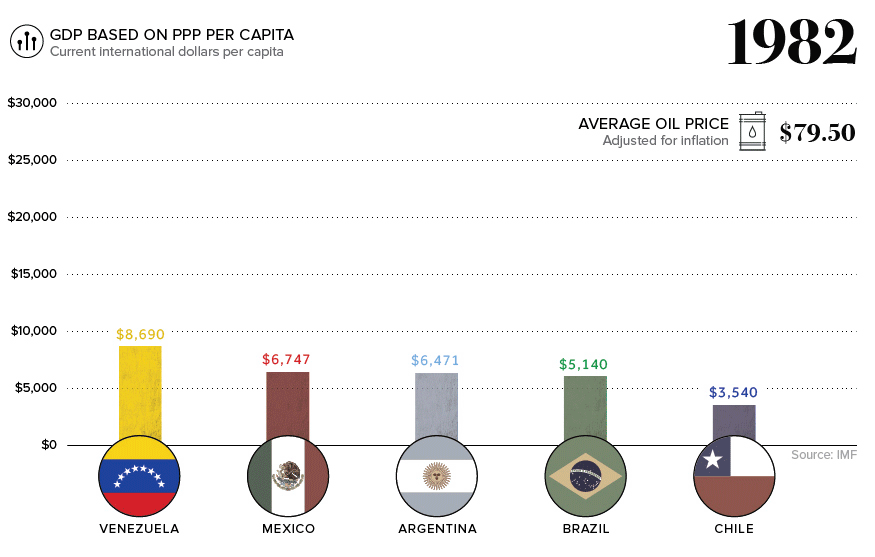国际原油价格从2014年中期开始暴跌,从100度美元每桶一直下跌至每桶30美元附近,这使高度依赖石油出口的委内瑞拉遭受到了沉重的打击。在这种情况下,委内瑞拉国内的出口收入大幅下降,委内瑞拉的货币大幅贬值,国际购买力也下降了。所以委内瑞拉没有足够的资金从国外进口充足的食物和药品。马杜罗始终没有意识到原油价格的暴跌会给委内瑞拉带来这么大的冲击。