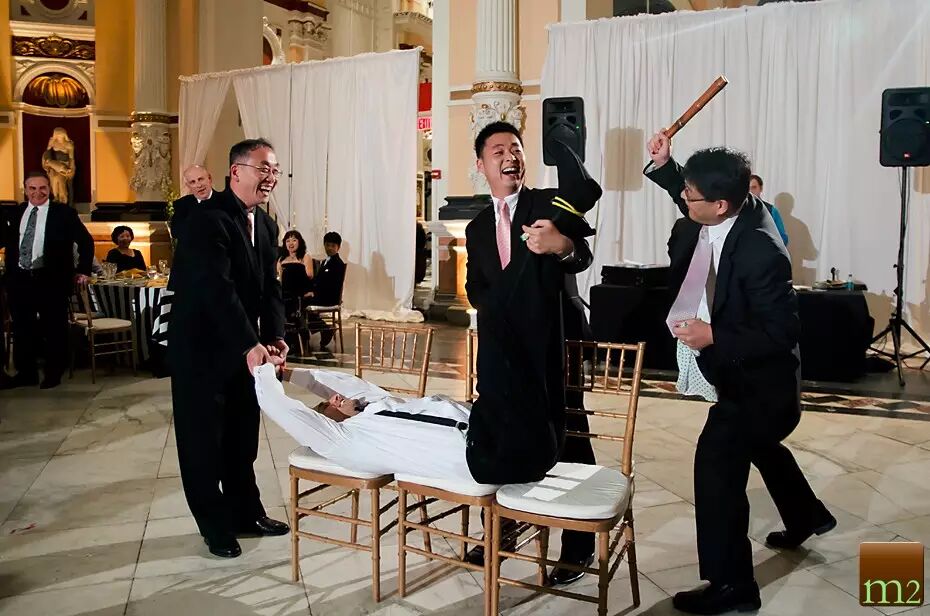 世界上应该没有几个人是脚心不怕痒的吧?也许不少中国新郎都在婚礼前默默祈祷,堵门的游戏里可千万别有“挠脚心”这一项。然而韩国新郎们就没这么好运了,因为这是他们不得不过的一关~ 没得选啊。