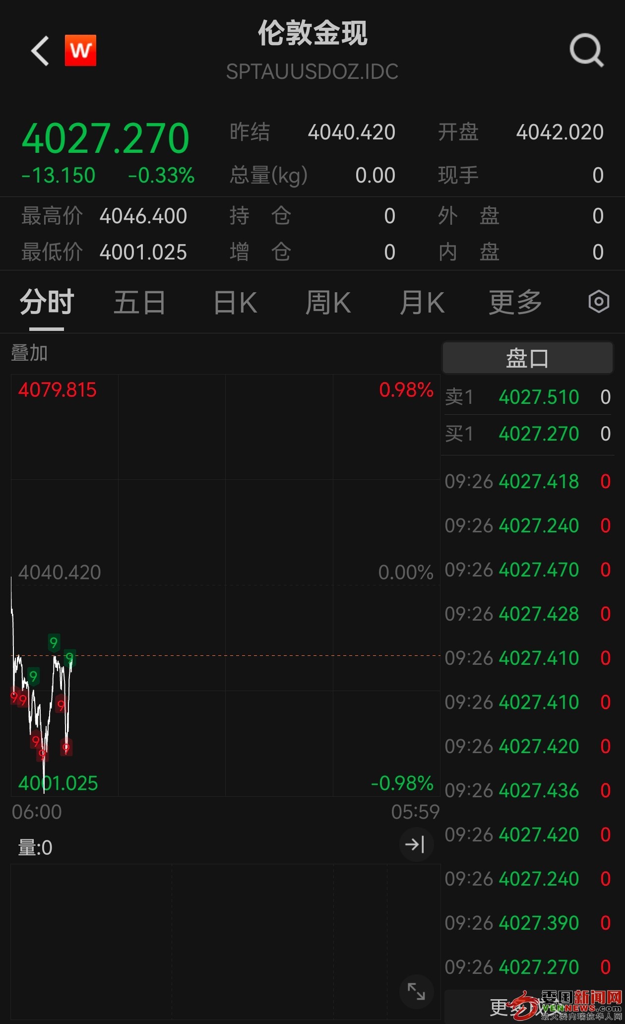 黄金突破每盎司4000美元大关